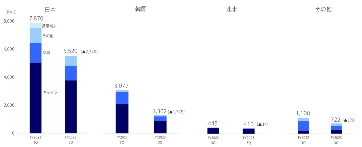 地域別の売上高については、いずれの地域も減少となっています。特に韓国の減少幅は非常 に大きいものがあります。日本では外向け需要の拡大、生活防衛意識の高まり等の影響を受けていますが、日本だけではなく他の国でも同様の状況と考えているとバルミューダは説明しています。